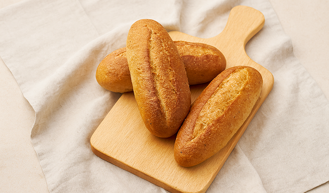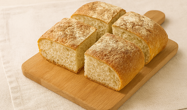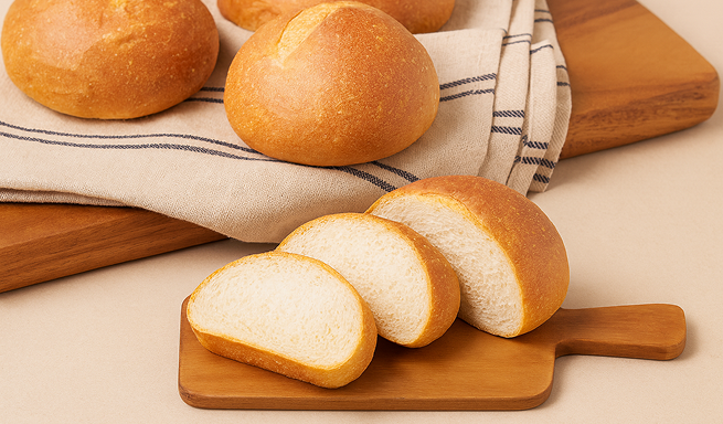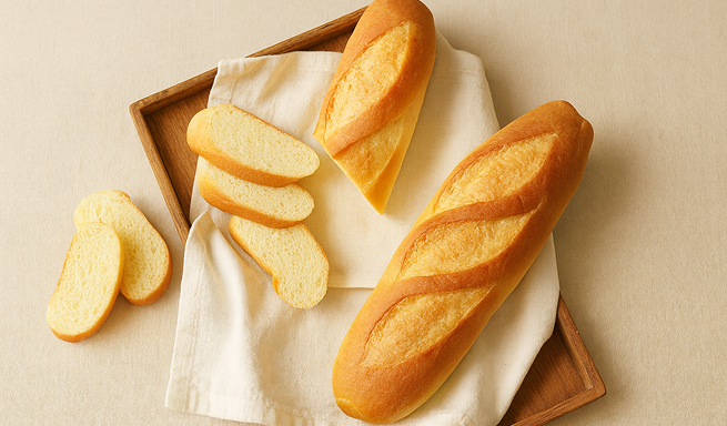 Moist bread with a hint of sweetness, pairs well with desserts or drinks.