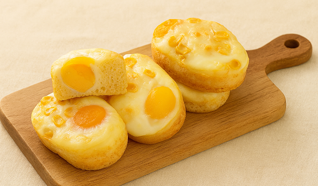 Bread with whole egg, sweet corn, and cheese for a rich flavor.